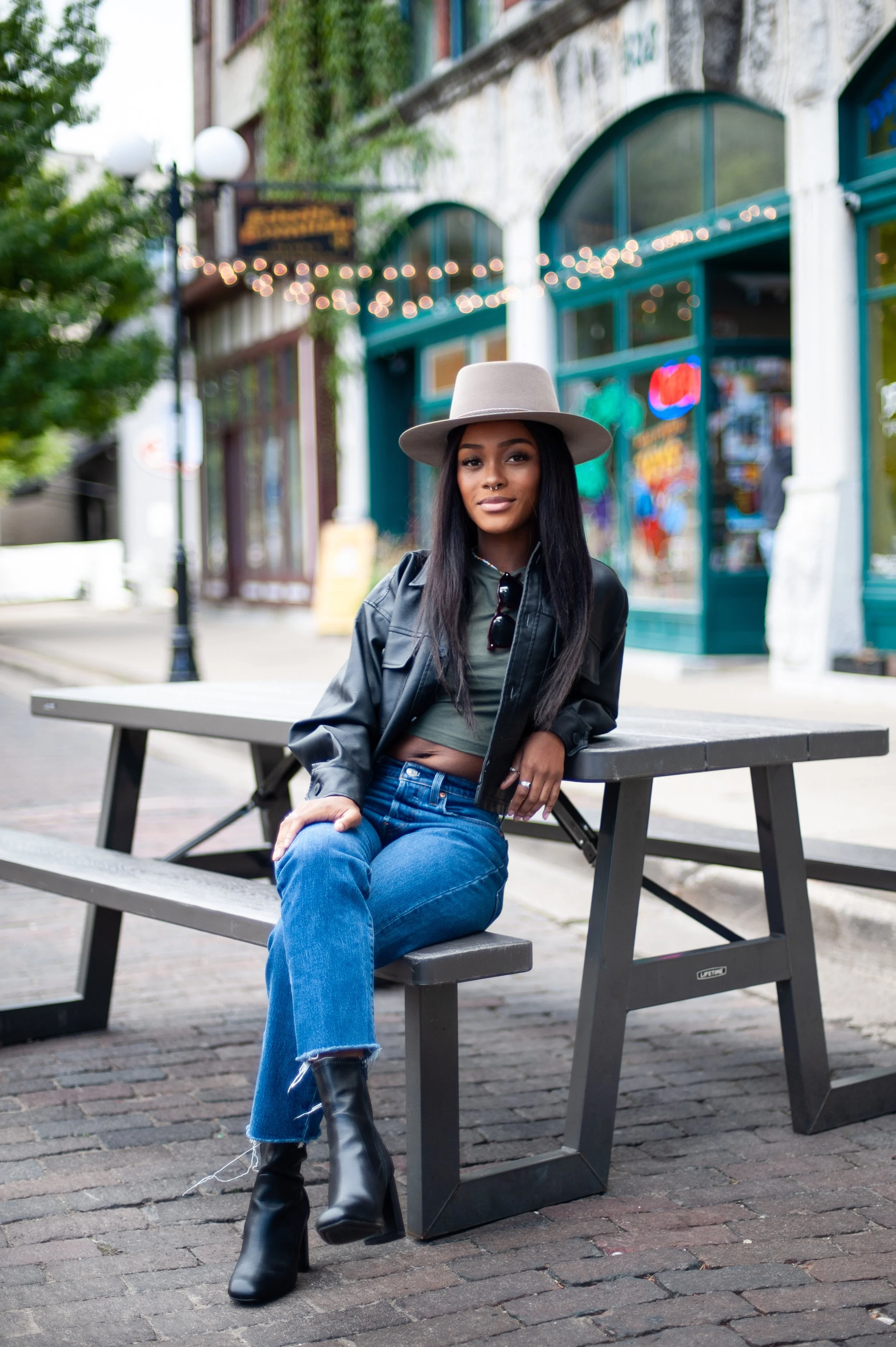 This look is my go-to when I want something casual but chic. A leather jacket instantly elevates jeans, and pairing it with boots gives me that cool-girl edge. Perfect for coffee runs, casual dinners, or just walking around downtown. It’s comfy but still feels like a full outfit.